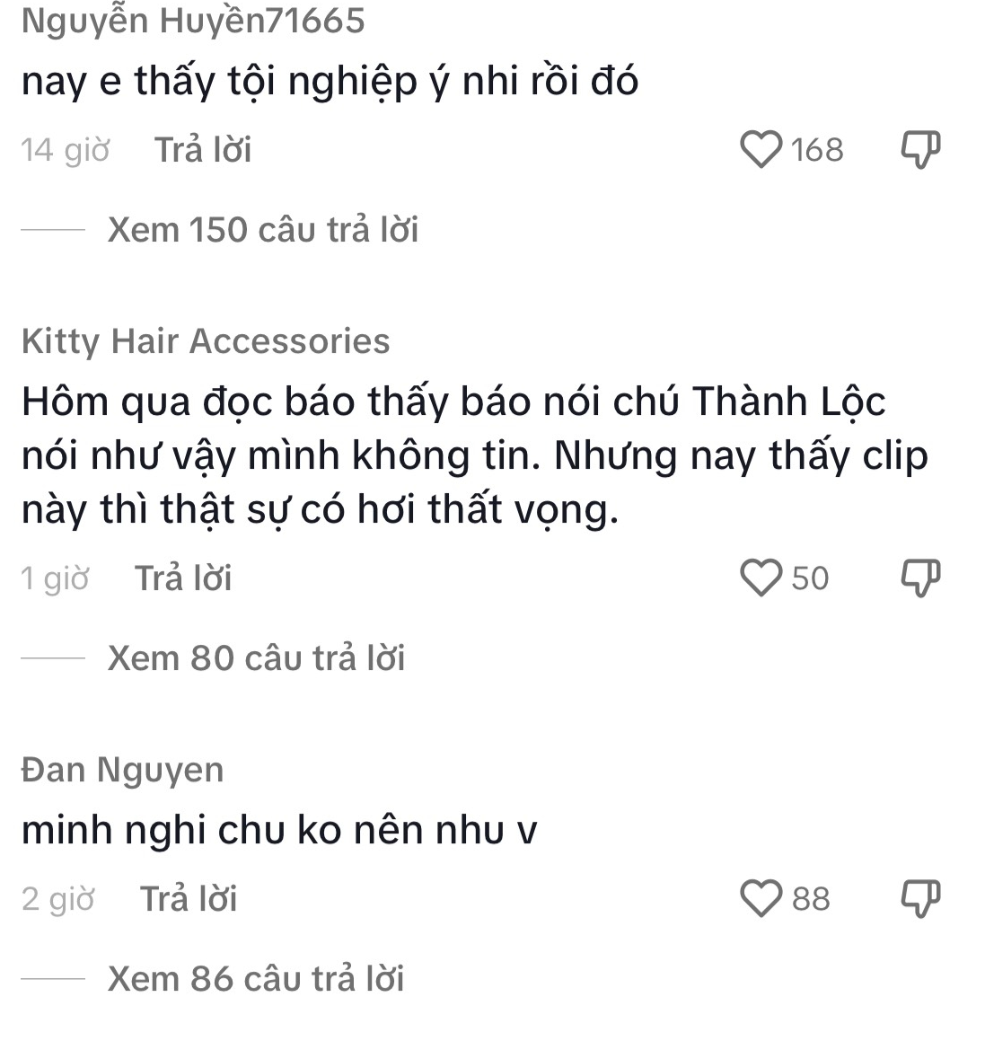 Tuy nhiên khi đoạn video được đăng tải trên MXH, nhiều người không đồng tình, thậm chí chỉ trích NSƯT Thành Lộc khi cà khịa phát ngôn của Ý Nhi.
