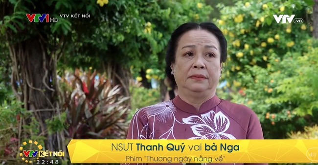 Mới đây, dàn diễn viên Thương ngày nắng về đã xuất hiện trong chương trình VTV Kết nối và chia sẻ về đoạn kết phim. Xuất hiện ở hậu trường cảnh đám cưới Trang - Duy trong phim, bà Nga - NSƯT Thanh Quý đẹp quý phái trong tà áo dài. NSƯT Thanh Quý chia sẻ đây có lẽ là lần xuất hiện lộng lẫy nhất của bà Nga béo trong phim.