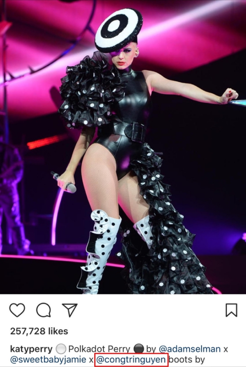 Chưa dừng lại đó, ngôi sao đình đám ca sĩ Katy Perry cũng đã tìm đến nhà thiết kế tài ba này và hào hứng đến mức đặt thiết kế hẳn cả một bộ sưu tập để trình diễn trên sân khấu.
