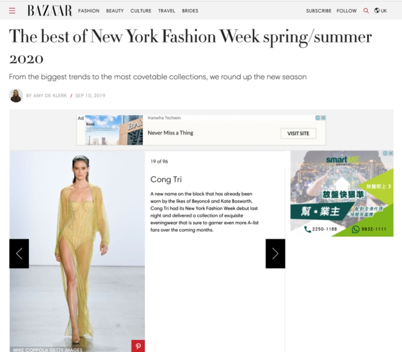Tạp chí danh tiếng Vogue Mỹ khẳng định, Nguyễn Công Trí là nhà thiết kế Việt duy nhất chạm đến “đường biên” thật sự của thời trang cao cấp (Haute Couture). Chưa dừng lại đó, vào tháng 9 năm 2019, tạp chí thời trang nổi tiếng Harper’s Bazaar US xếp Nguyễn Công Trí vào danh sách các nhà thiết kế có sáng tạo đẹp nhất trong khuôn khổ New York Fashion Week Xuân Hè 2020.