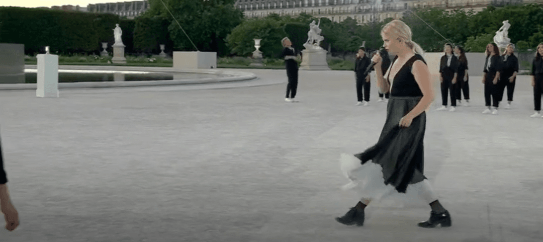 Lễ bế mạc mở đầu với khung cảnh tại khu vườn Tuileries nổi tiếng, là khu vườn tuyệt đẹp nằm giữa 2 địa điểm danh tiếng khác của Paris: Bảo tàng Cung điện Louvre và Quảng trường Place de la Concorde. Khu vườn này cũng chính là nơi ngọn đuốc Olympic Paris 2024 tọa lạc dưới hình dáng chiếc khinh khí cầu khổng lồ, ngọn lửa cũng đã cháy suốt 2 tuần lễ vừa qua.