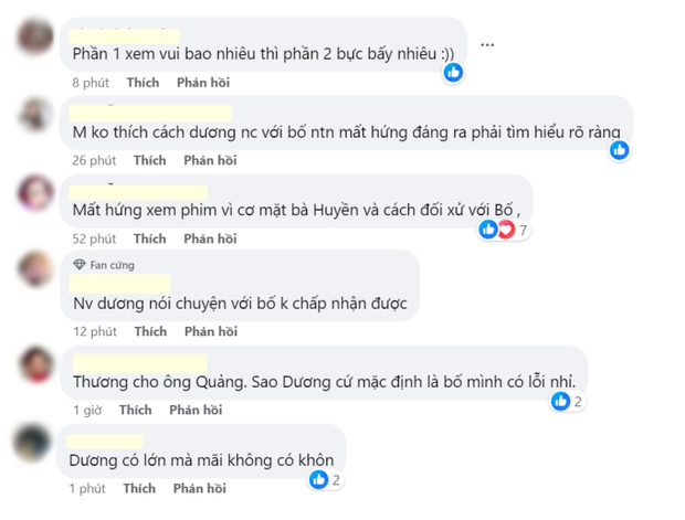 - Dương gây ức chế khi tin người ngoài mà không tìm hiểu rõ. Còn bố mình thì luôn nặng nhẹ không tin. Dương xứng đáng bị Tuấn bỏ.