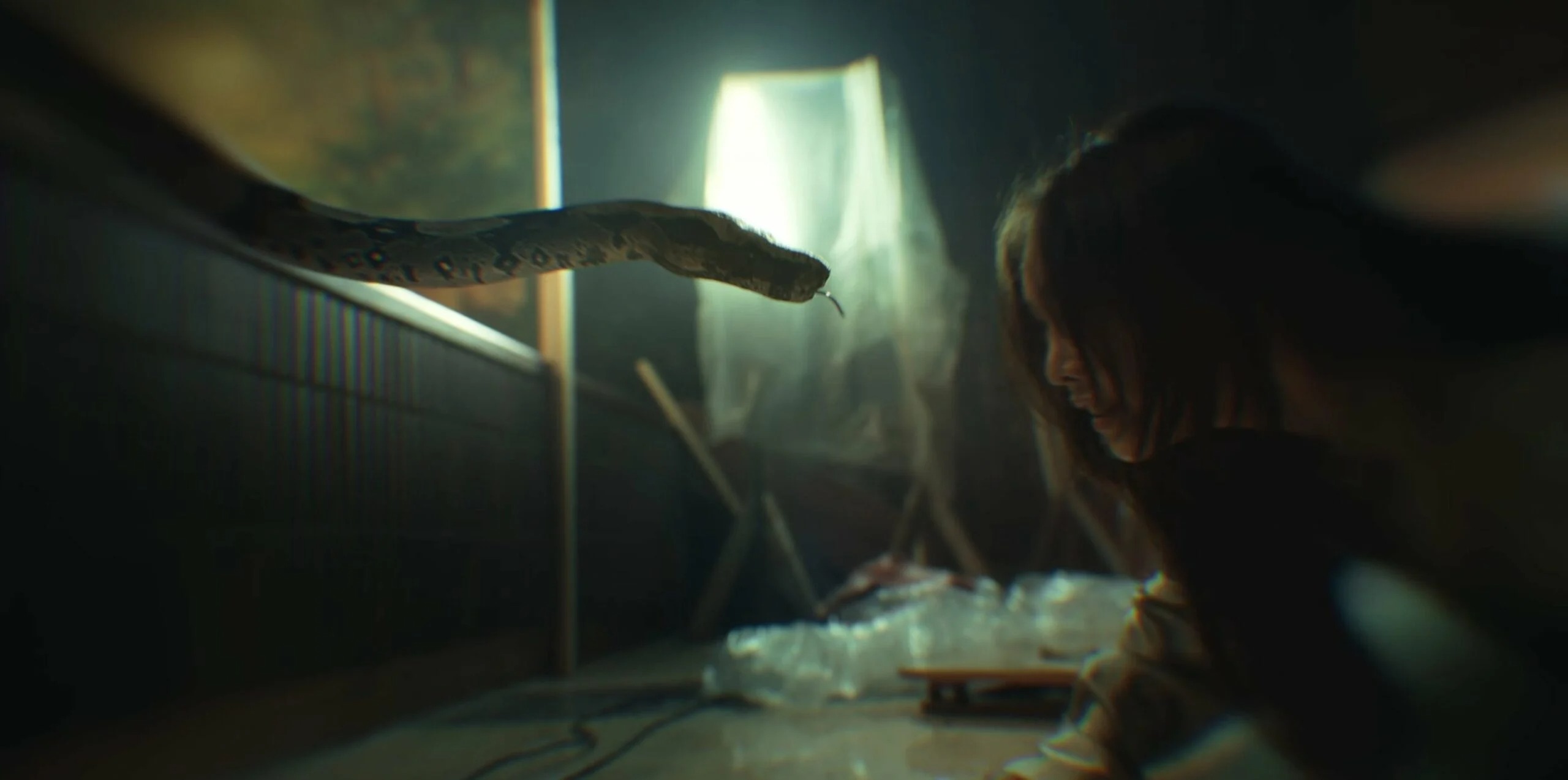 Kim Hieora chia sẻ: "Thực tế, cảnh này được quay bằng một con rắn thật chứ không phải kỹ xảo CG. Tôi diễn với rắn đã được huấn luyện chuyên nghiệp và đóng nhiều phim truyền hình trước đó. Nó rất thú vị".