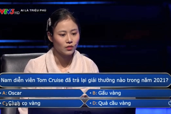 Câu thứ 8 tiếp tục liên quan đến lĩnh vực giải trí. Sau khi đọc câu hỏi: Nam diễn viên Tom Cruise đã trả lại giải thưởng nào trong năm 2021?, MC Đinh Tiến Dũng nói: Mời em, đồng nghiệp quốc tế của em đấy. Tuy nhiên Phương Anh nói luôn: Em đã được bao giờ đóng quốc tế đâu mà biết.