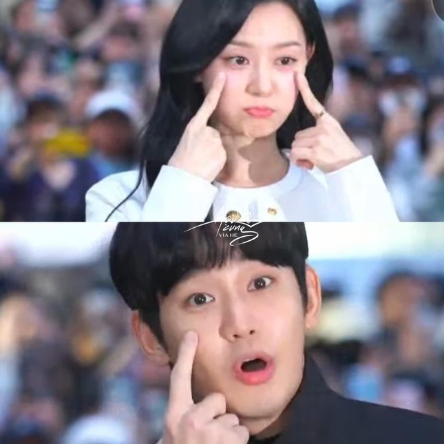 Cụ thể, cả 2 cùng đưa ngón tay lên đuôi mắt, diễn tả những giọt nước mắt rơi xuống – như 1 lời nhắc nhở về nhan đề của bộ phim Queen of Tears. Tuy nhiên, sự trùng hợp này khiến không ít người cho rằng cặp đôi có sự đồng điệu trong tâm hồn thì mới có thể cùng dùng 1 hành động như vậy khi chụp ảnh ở 2 thời điểm khác nhau.