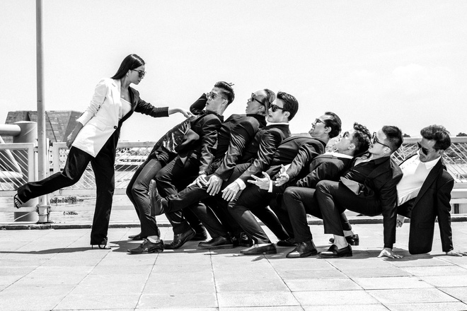 Bộ ảnh có sự tham gia của tất cả các gương mặt cast chính - phụ và cả đạo diễn Lý Hải. Ốc Thanh Vân - Lê Hạ Anh là hai bóng hồng hiếm hoi trong phim cũng hóa những chị đại cực ngầu, siêu thần thái bên cạnh dàn nam thần.