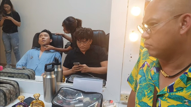 Sau đó, ông Bửu Điền vào thẳng phòng thay đồ của nghệ sĩ mà không hề bị cản trở. Trường Giang thấy ông cũng lễ phép: "Chào anh".