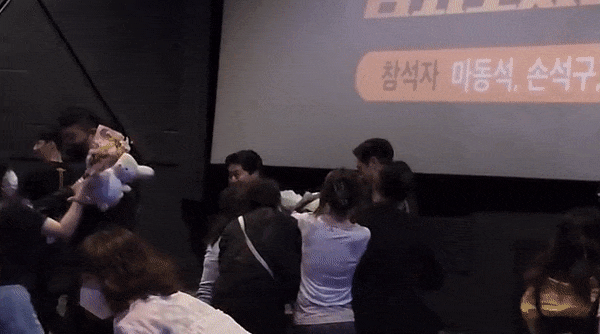 Một khán giả đã ném bảng cổ vũ về phía dàn diễn viên. Sau đó, hàng loạt đồ vật cũng được ném về hướng Ma Dong Seok, Son Soek Gu và Choi Gwi Hwa.