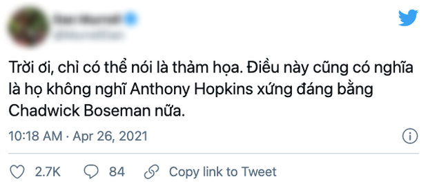28/04/2021 16:47Oscar gây thất vọng toàn tập vì 'đánh cược' vào cố tài tử Chadwick Boseman: Chỉ có thể nói là thảm họa!