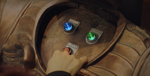 Trong phân cảnh Oh Yoon Hee đột nhập vào căn phòng bí mật của trùm phản diện Ju Dan Tae (Uhm Ki Joon), người xem được phen hoảng hồn bởi công tắc vào mật thất. Sở hữu căn phòng bí mật vừa đẹp vừa sang, thế nhưng 3 nút bấm của công tắc trông không khác gì… phim siêu nhân. Có khi nào phần 3 của Penthouse diễn ra tại hành tinh khác nên phim mới trang bị sẵn công tắc thế này?