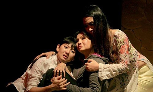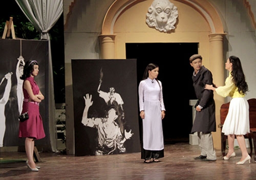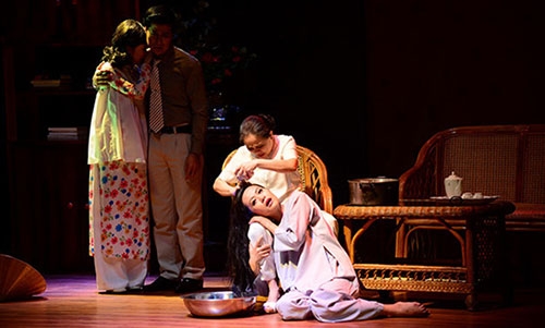 Một cảnh trong vở Tình lá diêu bông của nhà hát 5B. |