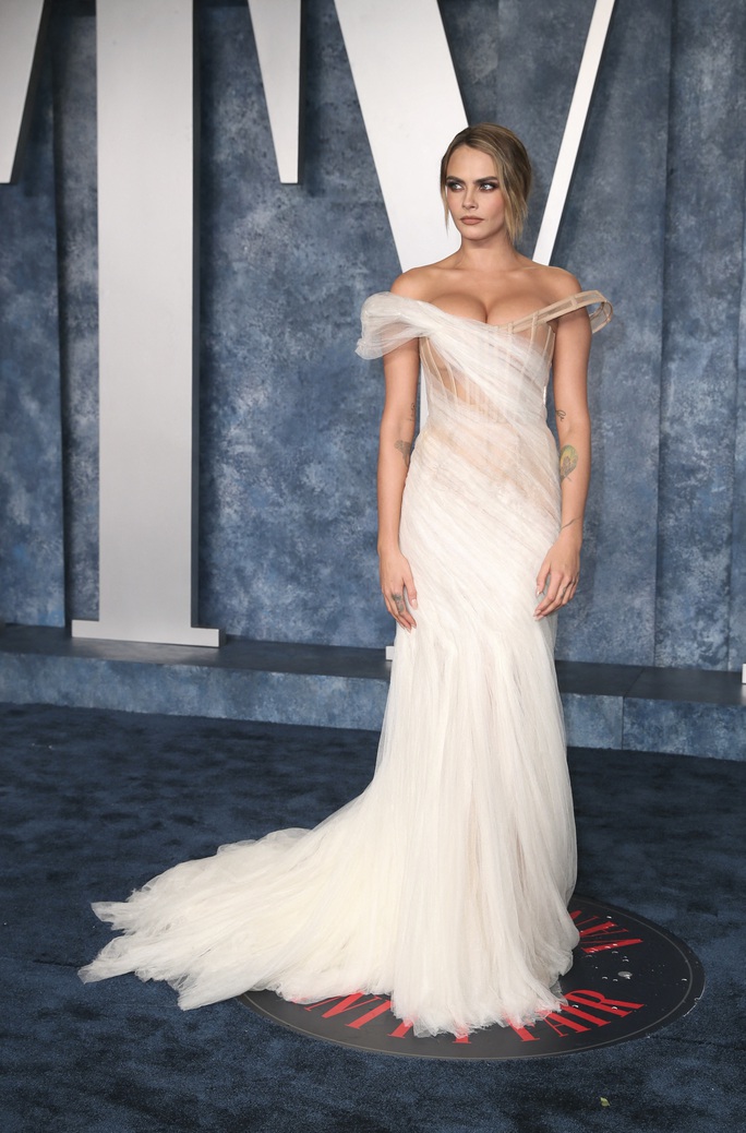 Tiệc hậu Oscar do tạp chí Vanity Fair tổ chức là sự kiện thường niên và ngoài các diễn viên đây cũng là nơi tụ hội của nhiều "chân dài" danh tiếng làng mốt thế giới. Không khác những mùa trước, tiệc hậu Oscar 2023 tiếp tục chứng kiến màn đổ bộ của dàn người đẹp Hollywood. Các diễn viên, người mẫu xuất hiện trong những bộ cánh lộng lẫy, gợi cảm nhất để khoe khéo vóc dáng. Alessandra Ambrosio, Emily Ratajkowski, Sophie Turner, Olivia Wilde, Kaia Gerber, Sabrina Carpenter... đều mặc đầm xuyên thấu hoặc cut-out táo bạo.
