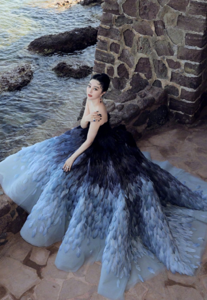 Nữ diễn viên Trung Quốc hóa 'thiên nga đen' với đầm lông vũ, tỏa sáng trên thảm đỏ bế mạc LHP Cannes 2023.
