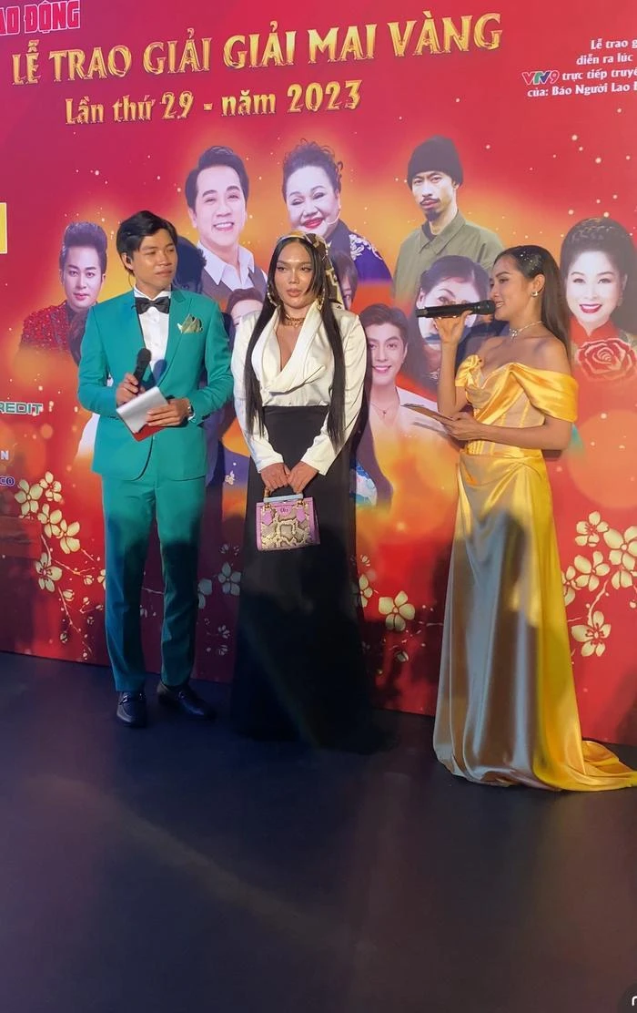 Phạm Thoại được xướng tên trên thảm đỏ Mai Vàng 2023. Không những thế, "hot TikToker" này còn xuất hiện trên sóng livestream của chương trình để tương tác với khán giả, giao lưu cùng MC thảm đỏ như nghệ sĩ.