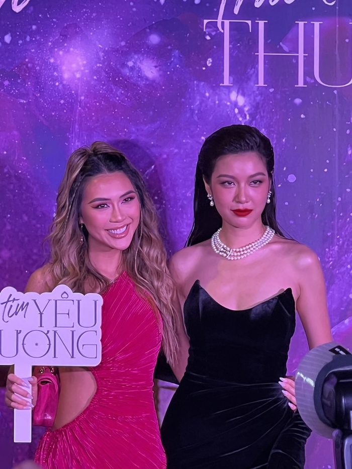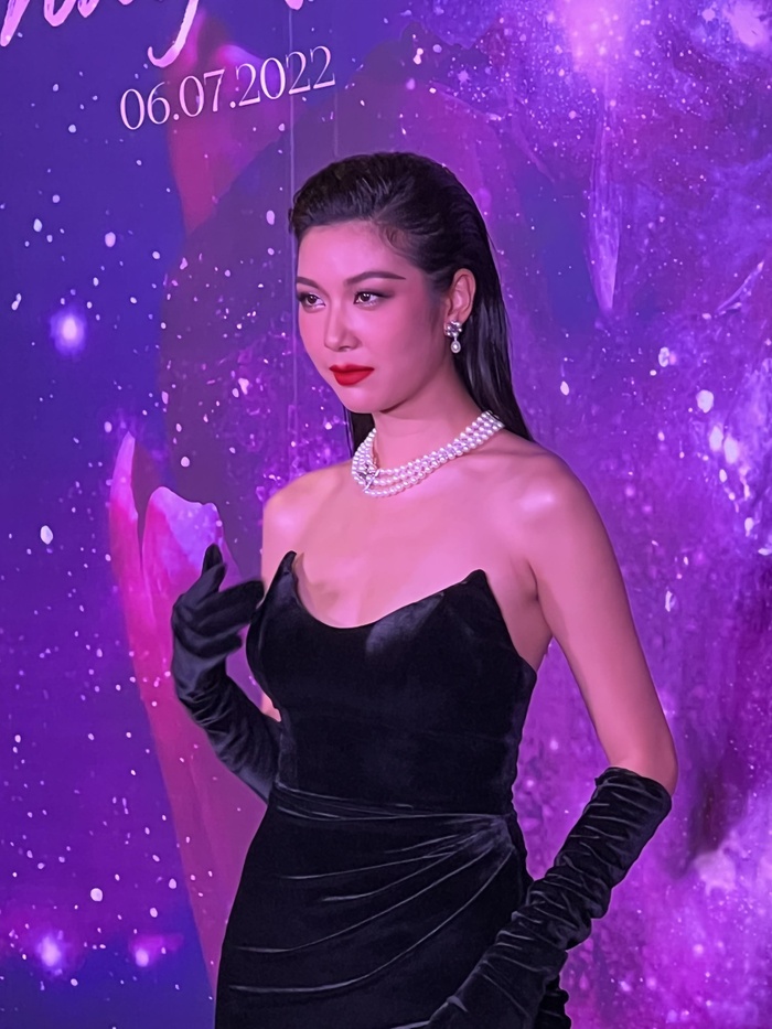 Tại buổi họp báo, Thúy Vân diện bộ váy đen gợi cảm. Chiếc váy cúp ngực, xẻ tà cao làm tôn lên vóc dáng chuẩn, đôi chân dài của người đẹp đến từ TP.HCM. Người đẹp toát ra vẻ rạng rỡ trong họp báo giới thiệu MV mới.