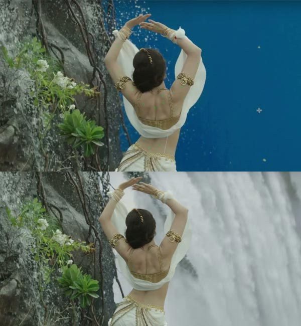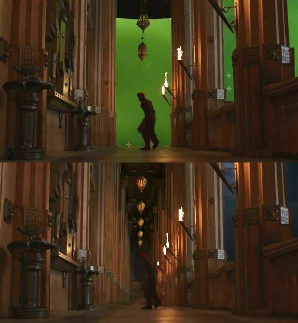 Đạo diễn của tác phẩm điện ảnh này không đầu tư kỹ về mặt nội dung mà đặc biệt chú trọng phần kỹ xảo điện ảnh. Trên ảnh là các bước để tạo nên một khung hình tráng lệ trong phim từ người thật và kỹ xảo hình ảnh.