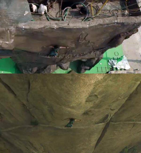 Những cảnh mạo hiểm khi nhân vật đứng cheo leo ở vách núi kỳ thực rất an toàn trên phim trường với việc dựng cảnh giả.