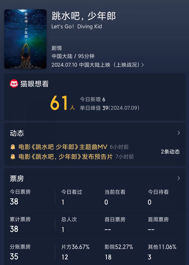 Mùa hè luôn là thời điểm các nhà sản xuất Hollywood tung ra những bom tấn đáng chú ý gây bão phòng vé. Các nền điện ảnh khác vì thế thường gặp khó khăn để cạnh tranh trong giai đoạn này. Tại Trung Quốc, các dự án nội địa cũng có dấu hiệu hụt hơi so với những tác phẩm như Inside Out, A Quiet Place: Day One... Tuy nhiên, mới đây, bộ phim Let's Go! Diving Kid đã gây sốc khi chỉ bán được duy nhất 1 vé khi ra mắt trong ngày 10/7. Giới truyền thông đánh giá đây là một thảm họa điện ảnh mới của quốc gia này trong mùa hè năm nay.
