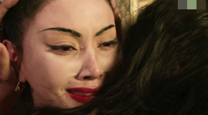 Ở những góc máy cận, quay khoảnh khắc Mai Davika bật khóc, gương mặt nữ diễn viên trở nên méo mó vì lớp phấn nền dày và cặp chân mày mảnh mai quá mức.