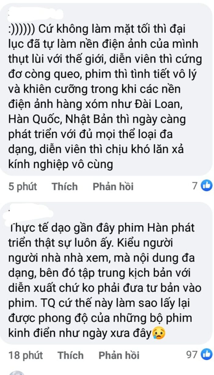 Nhiều netizen xứ Trung để lại bình luận chia sẻ sự tiếc nuối đói với dòng phim mà họ yêu thích: