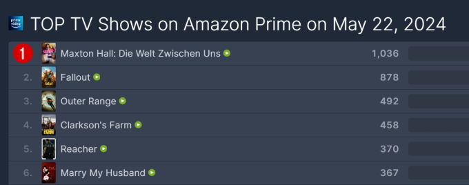 Maxton Hall: Die Welt Zwischen Uns là bộ phim học đường được chuyển thể từ tiểu thuyết bán chạy hàng đầu nước Đức. Phim bắt đầu ra mắt những tập đầu tiên từ hồi đầu tháng 5 trên nền tảng Amazon Prime và luôn nằm trong top 10 những phim hot tại nền tảng. Gần đây nó cũng đã chính thức chiếm vị trí vị top 1 trên BXH chương trình truyền hình được xem nhiều nhất toàn cầu của Amazon Prime.