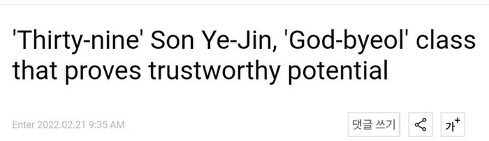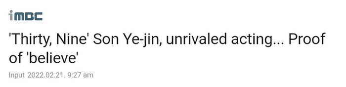 Giới truyền thông Hàn Quốc đã cho đăng tải những bài viết đánh giá cao khả năng diễn xuất đỉnh cao của "vợ Hyun Bin" trong Thirty Nine. Họ cho rằng, với khả năng đắm chìm, thể hiện mạch cảm xúc sâu sắc của nhân vật, Son Ye Jin thực sự không có đối thủ.
