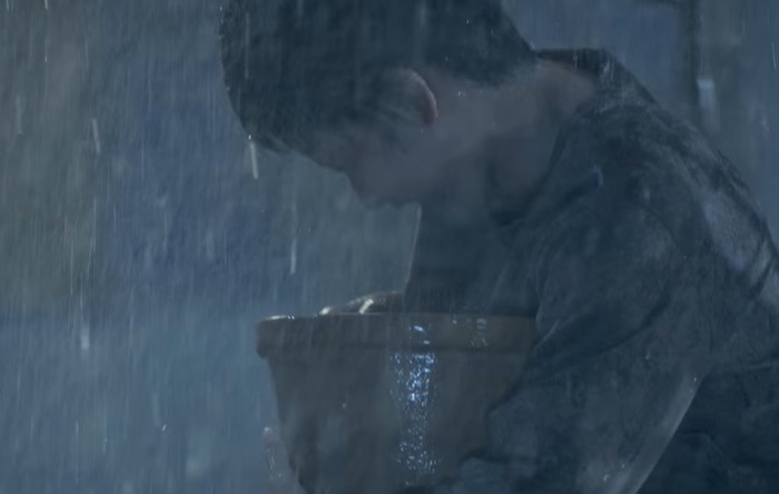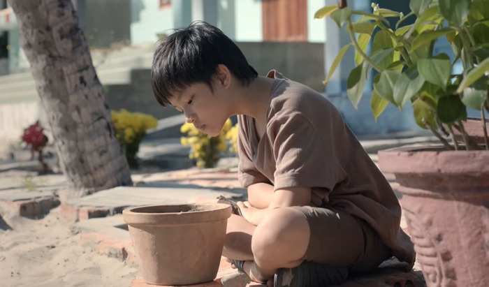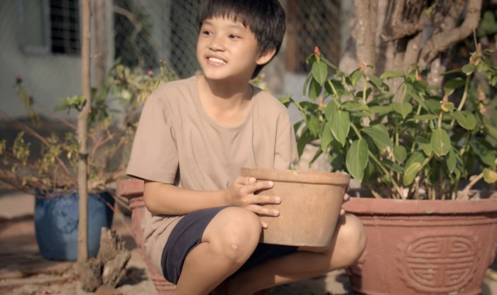 Dù trời nắng hay mưa, cậu bé vẫn cố gắng chăm sóc hạt đậu nảy mầm với hy vọng bố sẽ quay về.