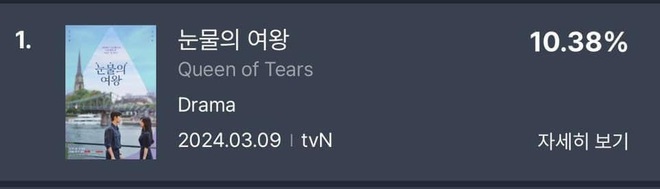 Good Data Corporation mới đây đã đăng tải kết quả khảo sát chủ đề phim truyền hình TV-OTT của tuần thứ hai tháng 4 (8/4 - 14/4/2024) và khiến khán giả bất ngờ vì sự thay đổi đáng để về khả năng cạnh tranh của các series Hàn Quốc. Dẫn đầu dĩ nhiên vẫn là Queen of Tears, một kết quả không có gì đáng ngạc nhiên nhưng theo sau nó lại là Lovely Runner, bộ phim mới chỉ ra mắt tập đầu tiên vào ngày 8/4 vừa qua.