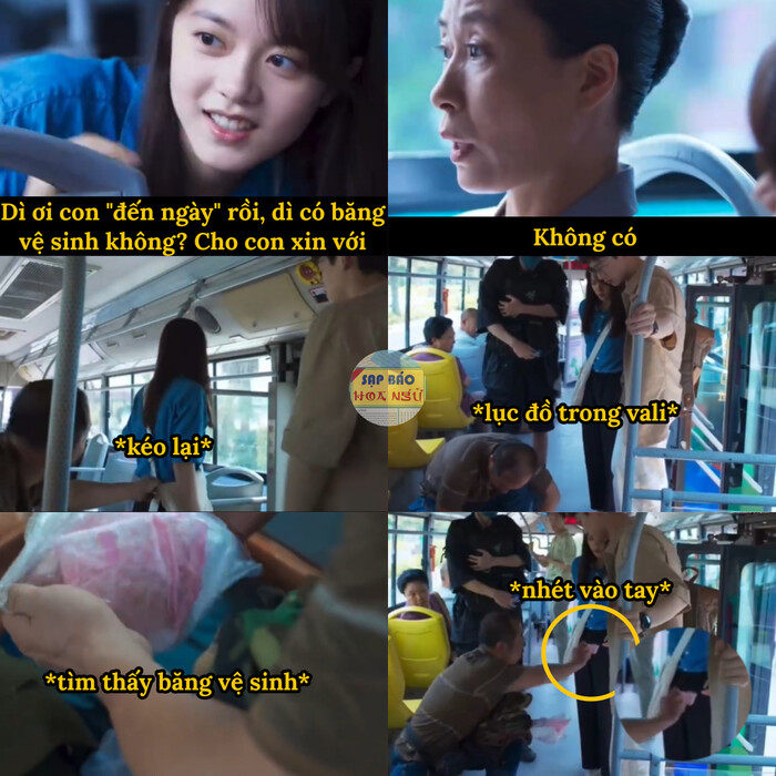 Người đàn ông ấy lục tung vali lên và tìm được một túi băng vệ sinh, khi nữ chính vẫn còn đang ngơ ngác chưa nhận thì ông đã lấy ra một miếng dúi vào tay cô. Khi xem đến phân cảnh này, nhiều khán giả đã không thể kìm nén được nước mắt.