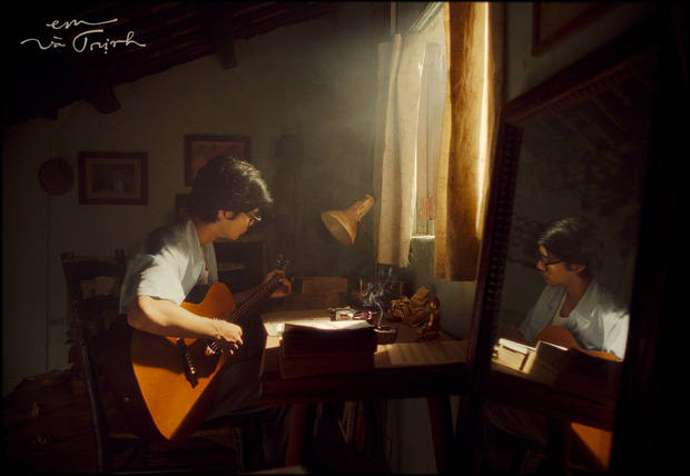 Trong vai Trịnh Công Sơn thời trẻ, diễn viên Avin Lu ngồi trong căn phòng mờ tối, ôm đàn dạo những nốt tình tứ viết lên ca khúc Diễm Xưa.