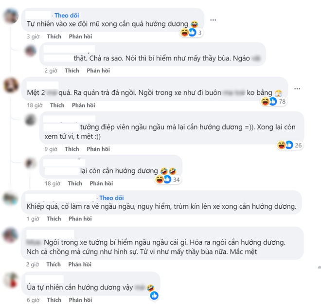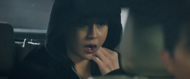 Cụ thể trong phân cảnh này, An Nhiên cố tình mặc đồ đen, đội mũ kín đáo để tránh lộ mặt. Cô lên xe của Nghĩa, sau đó hai người bàn chuyện đại sự với thái độ vô cùng nguy hiểm. Và để phá tan bầu không khí nguy hiểm này, đạo diễn đã để cho An Nhiên vừa nói chuyện vừa... cắn hương dương. Đã thế hai người còn bàn cả chuyện tử vi, bói toán, xem ngày để hại nữ chính cho thiên thời địa lợi nhân hòa.