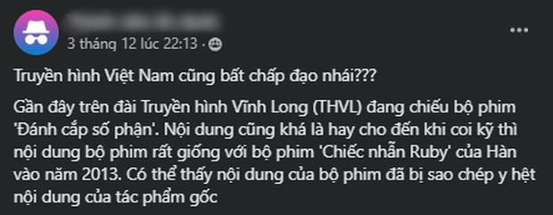 Theo thông tin chính thức từ Chiếc Nhẫn Ruby, cho đến nay bộ phim chỉ công khai bán bản quyền remake cho Ukraine (năm 2018) và Indonesia (năm 2020). Ngoài ra vào thời điểm bài viết tố cáo trên được đăng tải, Đánh Cắp Số Phận không có bất cứ thông tin nào về việc remake hay học hỏi ý tưởng từ Chiếc Nhẫn Ruby. Thậm chí có cư dân mạng còn phát hiện một bài viết về phim trên trang web nhà đài Việt Nam còn gần như "sao y bản chính" từ trang Wikipedia của Chiếc Nhẫn Ruby, chỉ đổi tên nhân vật.