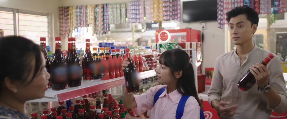 Màn lồng ghép quảng cáo quá lố này khiến khán giả vừa bực bội lại vừa... buồn cười. Chỉ là tìm thấy một chai nước mắm nhưng biểu cảm của Pu lại hạnh phúc một cách quá lố tới mức không cần thiết. Từ kịch bản đến diễn xuất của Thu Hà ở phân cảnh này đều tạo cảm giác vô cùng gượng ép.