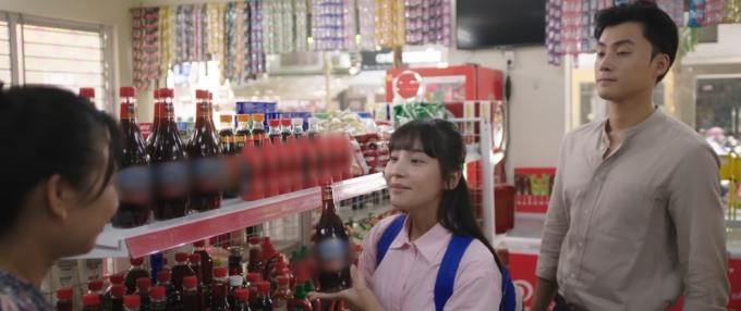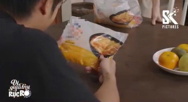 Cụ thể, ở phân cảnh này, Tả và Pu đang ngồi ăn cơm với nhau, Pu đi lấy nước mắm rót ra chén thì Tả ngăn lại, gương mặt rạng rỡ thốt nên câu thoại không thể "giả trân" hơn "rót cái này, cứ phải để đàn ông tụi tui chứ". Rõ ràng, chỉ là một hành động nhỏ, nhưng biểu cảm của hai nhân vật lại bị cường điệu quá mức. Chưa kể, đây là cảnh quay flashback - hồi tưởng của Pu để giải thích lý do vì sao cô có mặt ở nhà Chải nhưng màu phim lại không hề thay đổi, cũng không có hiệu ứng chuyển cảnh để giúp khán giả nhận biết. Không chỉ quảng cáo nước mắm, Đi Giữa Trời Rực Rỡ còn vô vàn những cảnh quay "trên trời rơi xuống" để quảng cáo xúc xích, há cảo, ô tô,...Tất nhiên, chẳng có thương hiệu nào tạo được hiệu ứng tích cực mà chỉ toàn những lời chê bai bởi cách cài cắm "sượng trân".