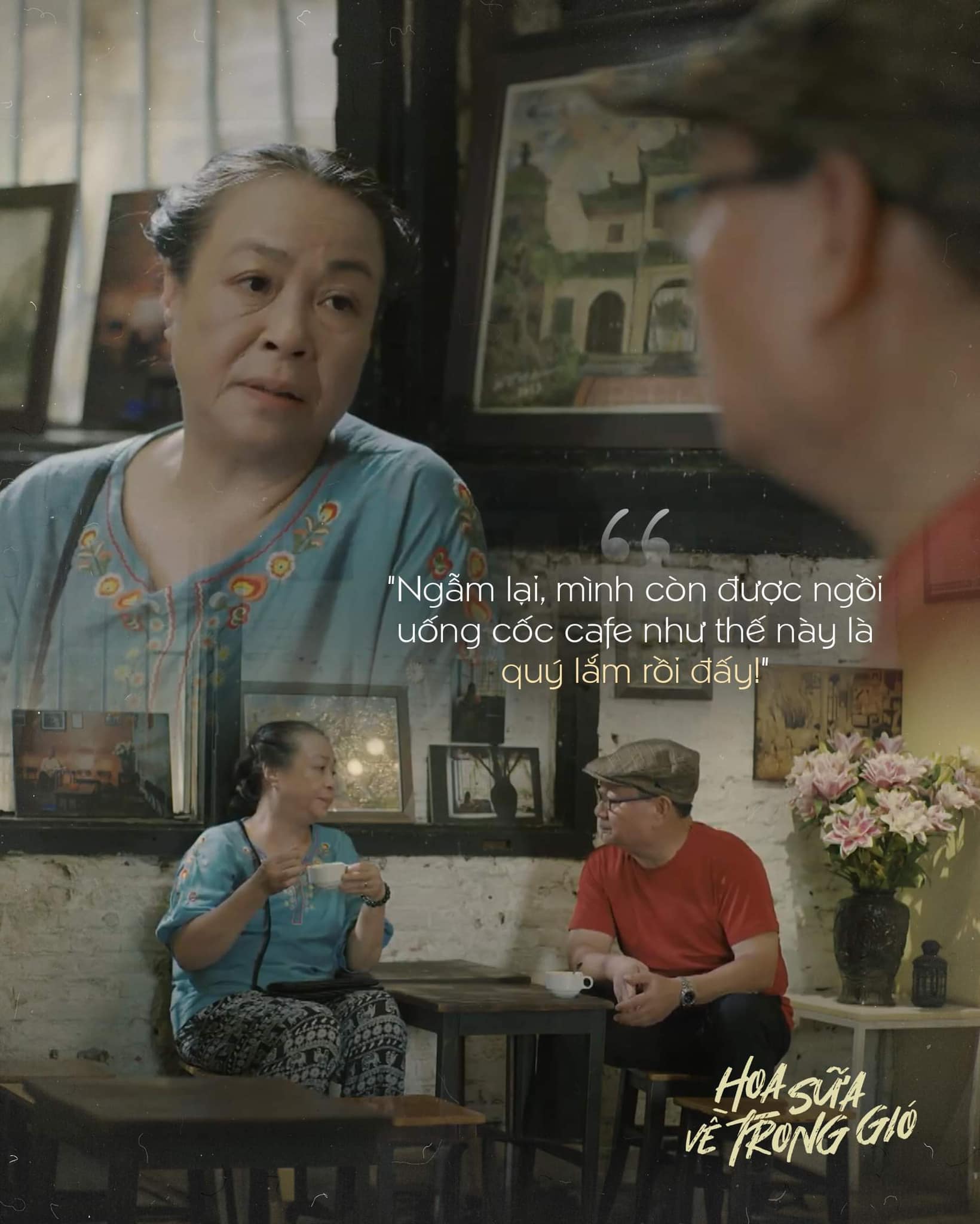 Giống như khoảnh khắc 2 người bạn già cùng ngồi uống cafe buổi sáng. Nghĩ về người bạn vừa phát hiện mắc bệnh ung thư của mình, bà Trúc cảm thán: "Ngẫm lại, mình còn được ngồi uống cốc cafe như thế này là quý lắm rồi đấy!".