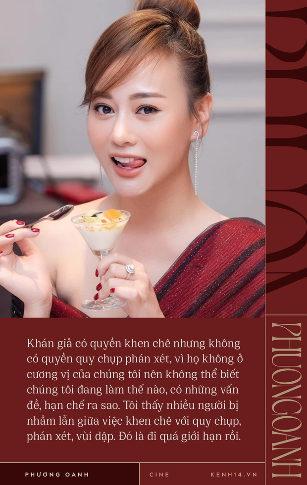 Thời điểm bộ phim vừa khép lại quá trình ghi hình, chuẩn bị lên sóng các tập cuối, Phương Oanh bắt đầu thoải mái hơn trong việc chia sẻ với báo giới về những tranh cãi xoay quanh nhân vật của mình. Chúng tôi cũng kịp thời có một cuộc nói chuyện với nữ diễn viên, nơi cô rất thoải mái bộc bạch những suy nghĩ của mình về Hương Vị Tình Thân nói riêng và sự nghiệp làm nghề nói chung.