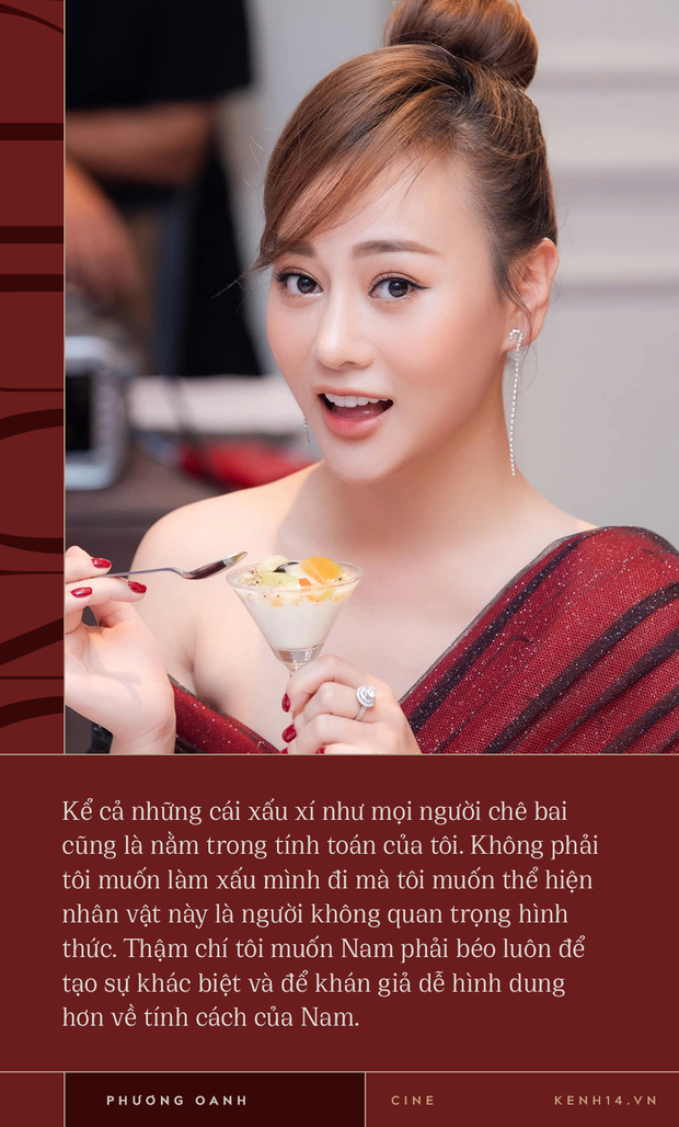 Nhiều người nói tôi tăng cân như mang bầu và chính xác có thời điểm tôi tăng gần 10kg cho vai diễn này. Tôi chấp nhận béo lên để mang tới sự khác biệt, kể cả việc ăn mặc cũng thế, ở ngoài đời tôi kỹ càng đến cả cái chun buộc tóc, lên phim lại là một bà Nam tuềnh toàng, có gì mặc nấy.