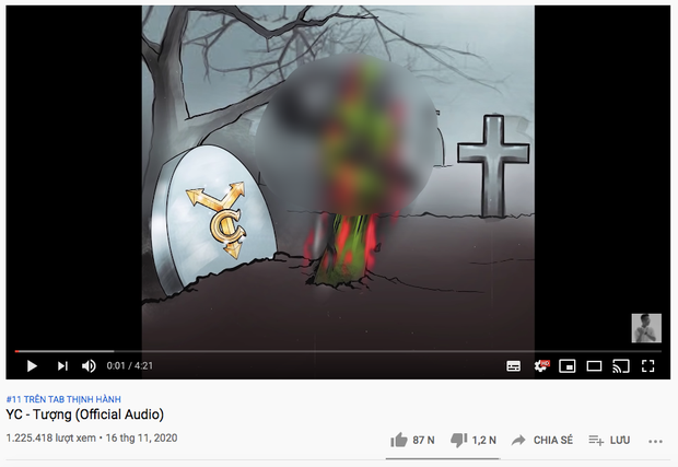 Trong khi đó, là sản phẩm ra mắt sau nhưng Tượng của Rhymastic đã thu về hơn 1,2 triệu view và "bay" thẳng tới top 11 trending YouTube. Lượt like dành cho track diss này cũng thu về hơn 87 nghìn và chỉ dành số dislike vỏn vẹn... hơn 1,2 nghìn.