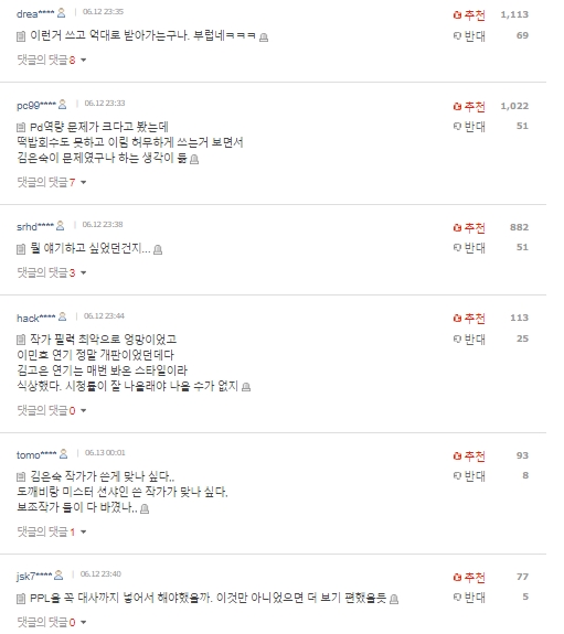 "Một kịch bản tệ hại nhưng cũng viết ra và kiếm được cả tỷ, ghen tỵ thật đó", "Rồi cuối cùng thông điệp mà bộ phim này muốn nói là gì vậy?", "Bộ phim tệ, kịch bản tệ. Lee Min Ho diễn tệ nốt, anh ấy diễn quá chán", "Nếu Trái đất này không diệt vong thì bộ phim này sẽ mãi được nhớ là dở nhất trong lịch sử", "Kim Go Eun quá xấu xí" - Netizen Hàn ném đá Quân vương bất diệt.