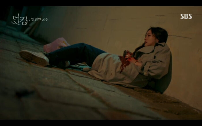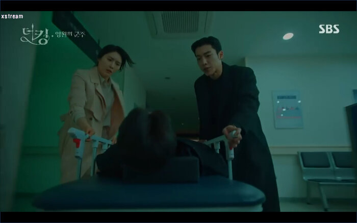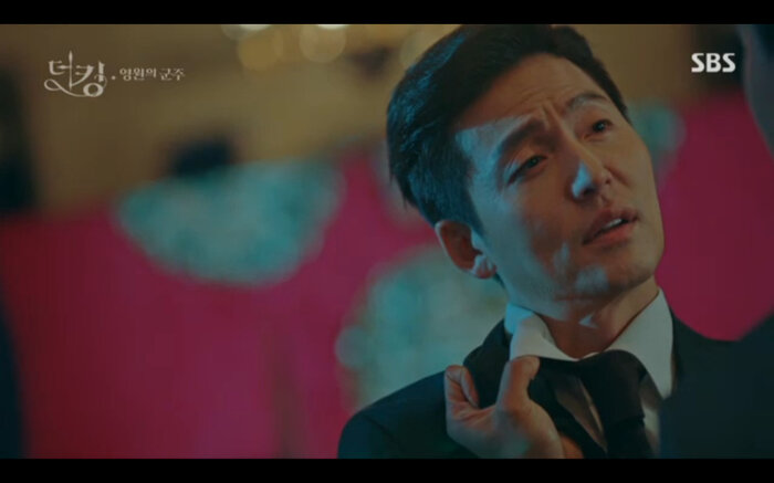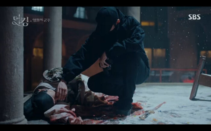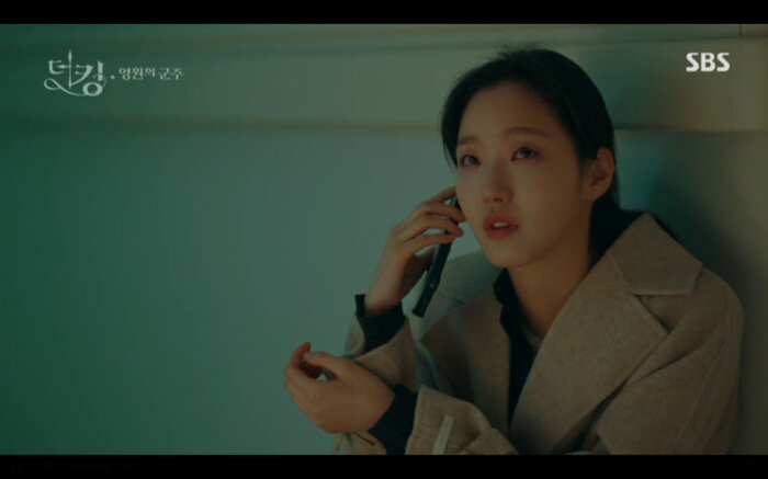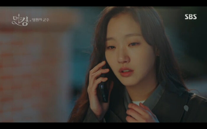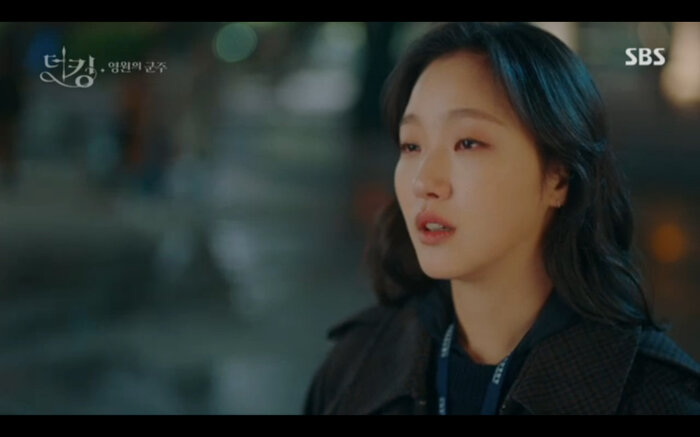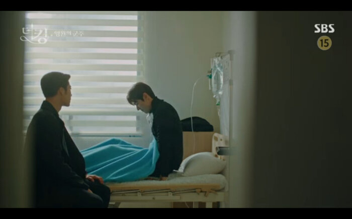 Tập 14 của Quân vương bất diệt (The King: Eternal Monarch) tiếp nối phân cảnh Lee Gon (Lee Min Ho) bị Luna (phiên ảnh tội phạm của Kim Go Eun) lừa uống thuốc mê nhằm hãm hại. Khi đối mặt với cô anh cũng nhận ra rằng mình chính là người đã xuyên qua cánh cổng thời gian cứu bản thân lúc nhỏ. May mắn Jo Young đã trở về kịp lúc để cứu vua của mình. Bởi không có giấy tờ chứng minh thân phận Jung Tae Eul đành nhờ đến sự giúp đỡ của đội trưởng mình đưa anh đến chữa trị ở một bệnh viện không cần khai báo.