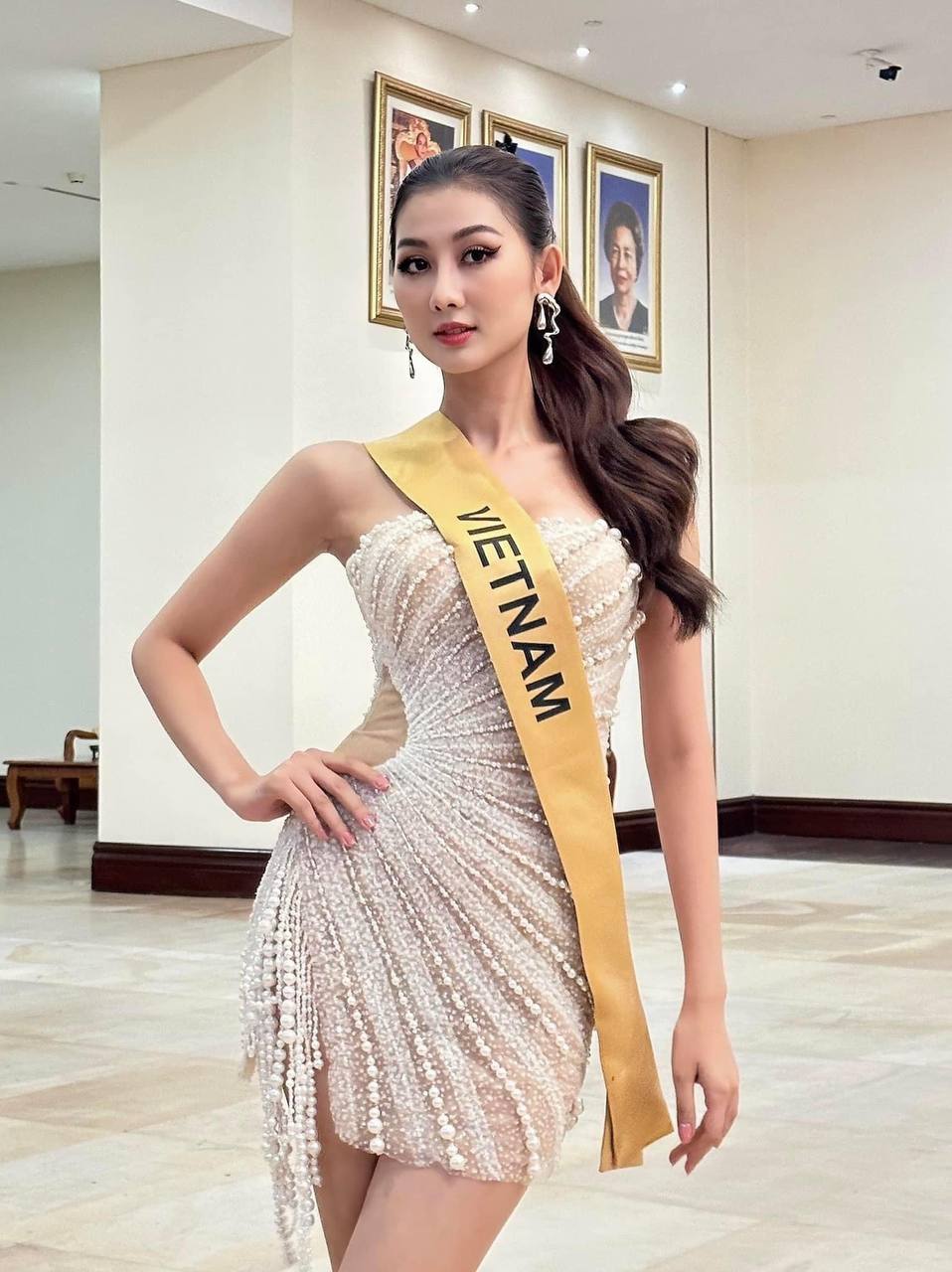 Những ngày qua, đại diện Việt Nam liên tục vướng phải ý kiến trái chiều về tác phong và trang phục. Người đẹp sinh năm 2001 không đeo sash, mặc chiếc váy xuyên thấu gây tranh cãi xuất hiện tại hoạt động của cuộc thi.