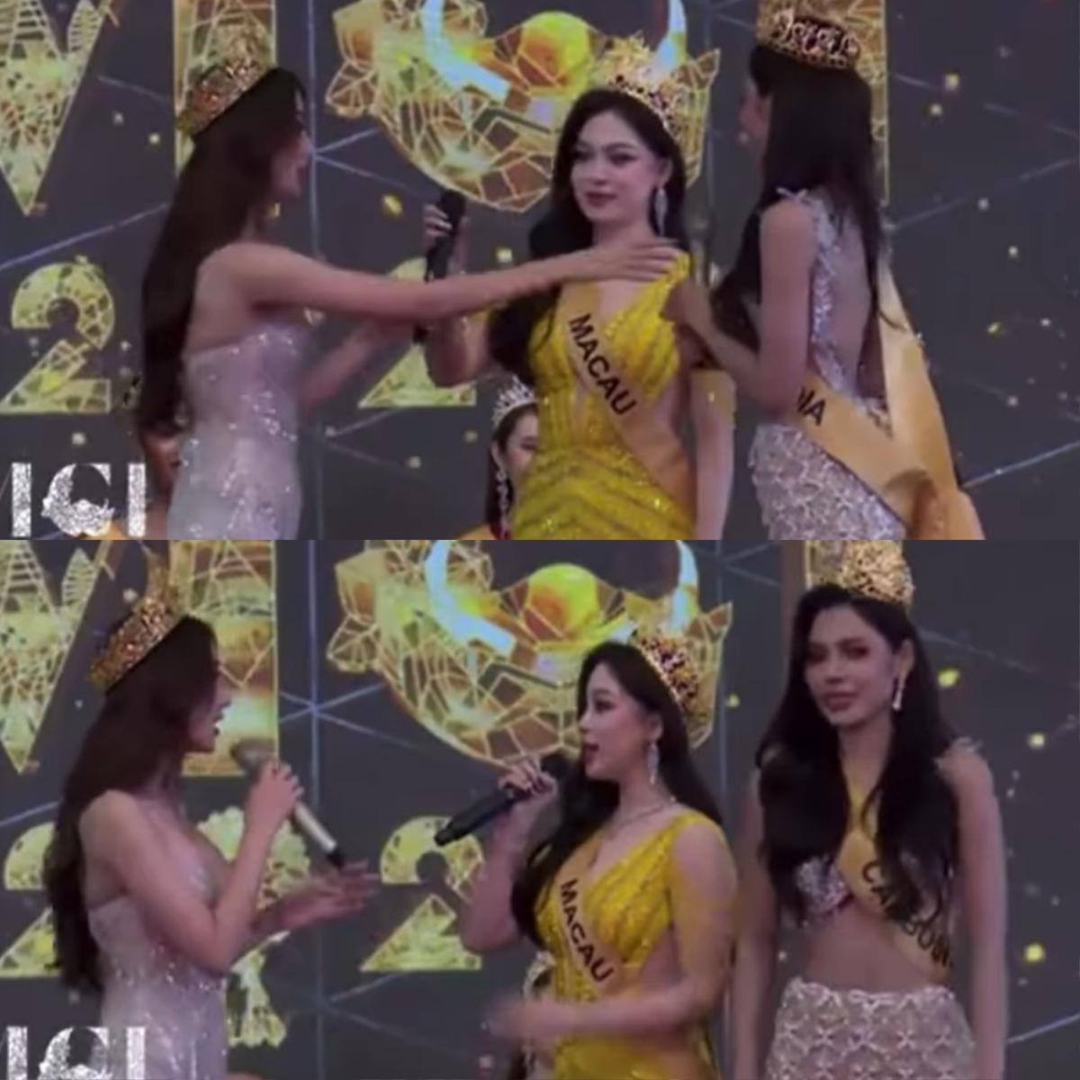 Quế Anh còn bị cho là kém tinh tế với đại diện đến từ Campuchia. Cụ thể, khi Quế Anh và Sotheary Bee đang chia sẻ thì có thêm người đẹp Macau (Trung Quốc) lên sân khấu chung. Vì 3 người mà chỉ có 2 micro, thế nên khi Miss Grand Macau cầm mic hát, Quế Anh muốn hát chung nên đã lấy micro từ Sotheary Bee khiến đối phương "sượng trân".