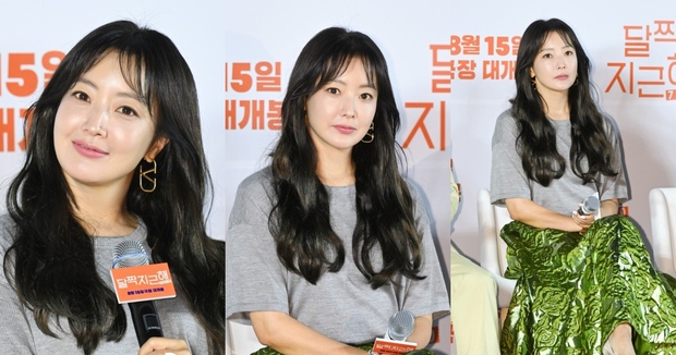 Kim Hee Sun làm tóc đơn giản, trang điểm nhẹ nhàng nhưng vẫn thu hút nhờ làn da căng bóng, đường nét khuôn mắt trẻ trung rạng rỡ dù đã 46 tuổi.