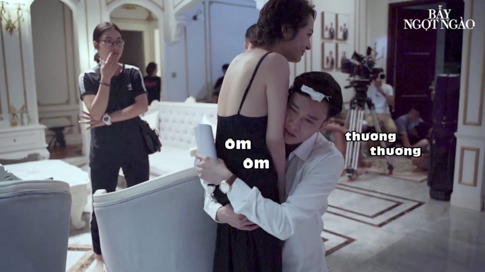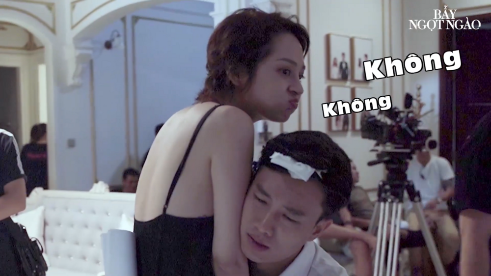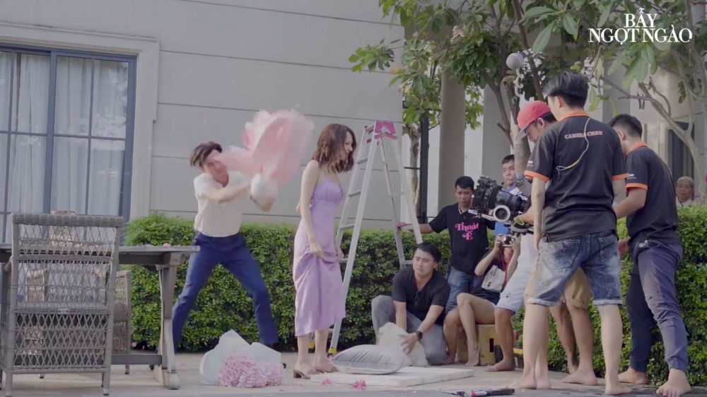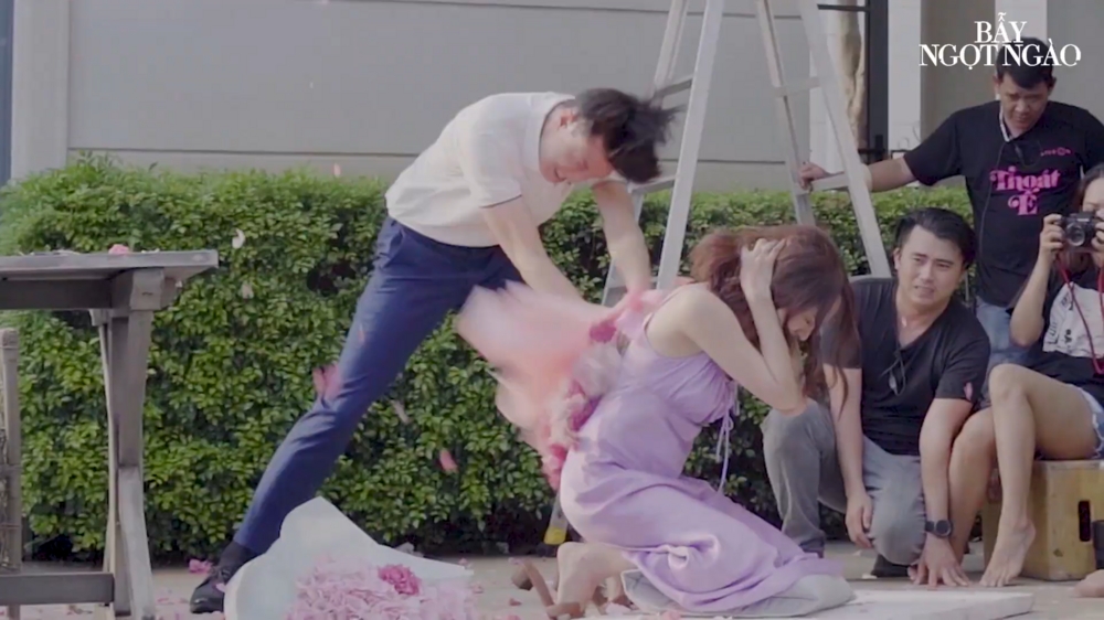 Đoàn phim mới đây đã tung clip hậu trường tiết lộ hai sắc thái hoàn toàn đối lập của cặp đôi. Trong phim, Quốc Trường có rất nhiều hành động bạo lực với Bảo Anh từ xô cô vào cạnh bàn cho đến cầm cả bó hoa quật tới tấp. Anh cho biết trước khi diễn đã bàn bạc và động viên Bảo Anh rằng hãy cố chịu đau một lần để hoàn thành cảnh quay bởi nếu anh nương tay và phải quay lại nhiều lần thì cô sẽ đau hơn.