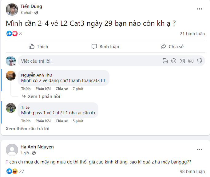 Bất chấp quy định của BTC, giao dịch mua bán, sang nhượng vé đang diễn ra tấp nập trong các hội nhóm trên MXH.