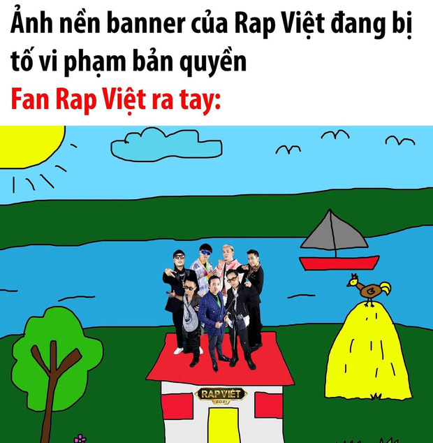 Để giảm bớt căng thẳng, netizen đã trổ tài thiết kế poster miễn phí cho Rap Việt đậm chất "cây nhà lá vườn" kèm lời nhắn gửi: Lần sau cứ hô lên một tiếng là đội nhà sẵn sàng thiết kế miễn phí, khỏi phải download ở đâu cho xa xôi.