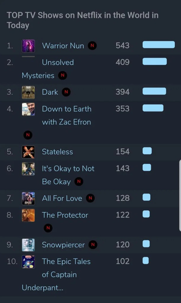 16/07/2020 22:12Rating thấp nhưng 'Điên thì có sao' vẫn trở thành phim truyền hình Hàn Quốc đầu tiên lọt top 6 Netflix toàn thế giới
