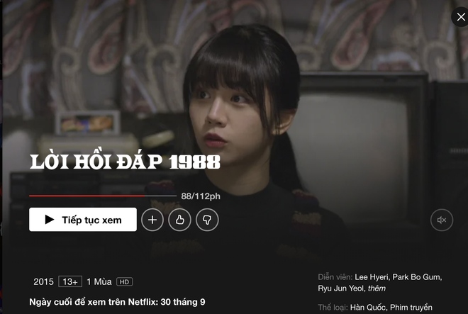 Cụ thể tối ngày 1/9, khi ấn vào xem bộ ba phim Reply 1988, Reply 1994 và Reply 1997, người hâm mộ sẽ đọc được dòng chữ "Ngày cuối để xem trên Netflix: 30 tháng 9". Điều này đồng nghĩa với việc bắt đầu từ 1/10, series phim đình đám này sẽ không còn xuất hiện trên nền tảng xem phim trực tuyến đình đám nhất hành tinh (ở thị trường Việt Nam), kết thúc chuỗi ngày tháng công phá.