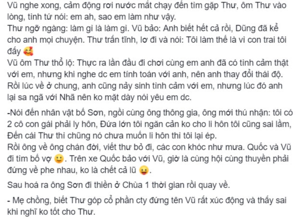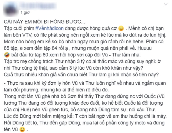 Theo đó, chủ nhân bài viết tiết lộ rằng mình có người quen trong đài nên đã được cho xem các tập cuối của phim. Diễn biến chính cụ thể như sau: