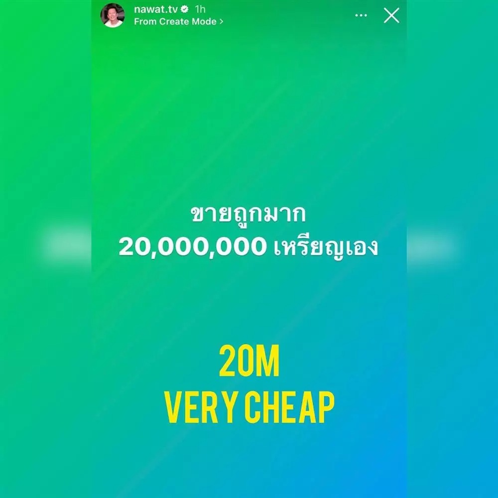 Trên Instagram cá nhân, ông Nawat bất ngờ treo dòng trạng thái, tạm dịch: "20 triệu đô la, quá rẻ".